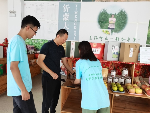 实践团队首先跟随司振华来到沂蒙大妮的种植基地,进行现场参观沂蒙大妮产品是如何种植和生产,并详细介绍沂蒙大妮的创业历程。以种植苹果为讲解点,司振华就“怎样种出一颗好苹果?”从国际领先的种植方式、大量有机肥修复并提升土壤质量、生物防空,以虫治虫、全员生草,回归生态自然和优势品质更具市场竞争力等五个方面详细为实践团成员进行介绍,让团队成员对如何种出一颗好苹果有更深的了解。同时为其介绍沂蒙大妮助力脱贫攻坚策略,在疫情期间,沂蒙大妮采取网上售卖扶贫大鹏花卉等产品,日销万单,降低疫情影响,助力脱贫攻坚,带动当地居民经济发展。