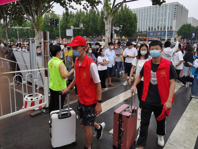 晨雾泛起、天光微亮时,身着红色马甲、面带口罩的迎新志愿者们已经开始了迎新的准备工作,为萌新们准备进入山理工的第一份惊喜。