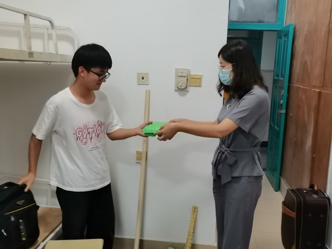 在20号公寓楼,公司领导认真查看新生宿舍情况,了解新生对生活、学习等方面的需求,鼓励新生从大学第一天开始养成良好生活习惯,更好适应大学的学习生活。