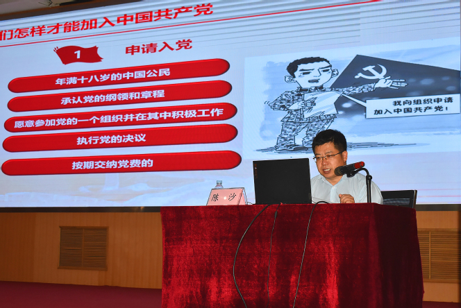 会议第二阶段,陈沙从“中国共产党是一个什么样的政党”“为什么要加入中国共产党”“怎样才能加入中国共产党”三个方面对新生进行入党启蒙教育。他希望新生树立共产主义信仰,端正入党动机,主动递交入党申请书,以实际行动积极向党组织靠拢,勇于担负起实现中华民族伟大复兴的历史重任。 (赵宗超 韩景松 宋明雪)