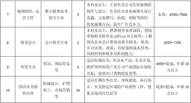 一、 需求专业及要求: