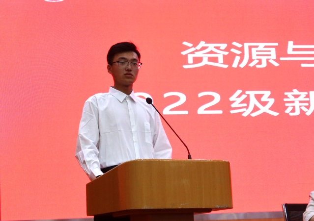 2022级环境工程专业李天阔代表新生发言,表示会珍惜公司丰富而宝贵的学习资源,发现学科之美,热爱所学专业,在专业领域积极进取,不断提高自己综合能力,实现自身价值