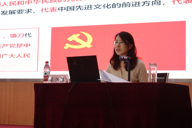 秦伟伟从中国共产党是一个什么样的政党、为什么要加入中国共产党、怎样才能入党等三个方面对新生进行入党启蒙教育,帮助大家加深对党的认识,指明努力方向。她希望新生树立共产主义信仰,端正入党动机,主动递交入党申请书,以实际行动积极向党组织靠拢,争取能够早日加入党组织,勇于担负起实现中华民族伟大复兴的历史重任。(赵宗超)