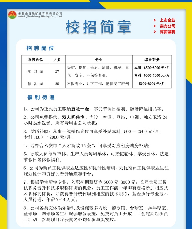 安徽金日晟矿业有限公司校招简章