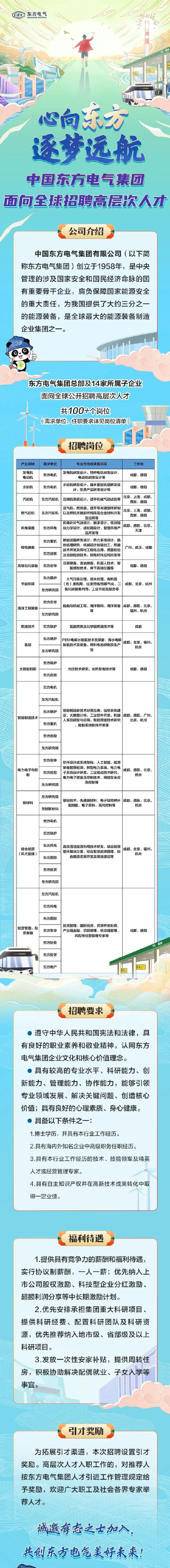 中国东方电气集团有限公司面向全球招聘高层次人才