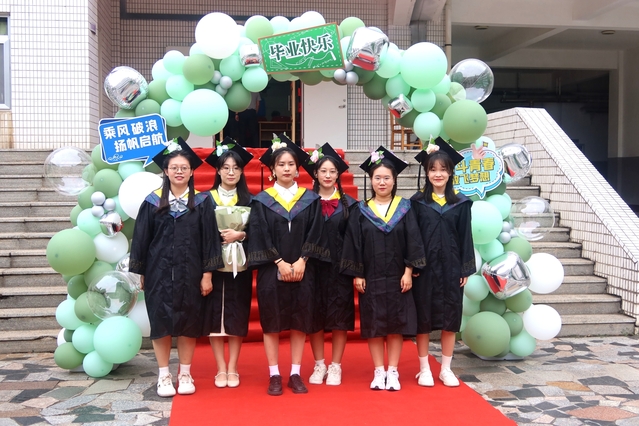 报告厅正门入口,“青春奋进,筑梦远航”的毕业宣传展板和气球拱门前,身穿学位服的毕业生呼朋引伴,与老师同学们合影留念、拥抱道别,在母校留下珍贵合影,为自己四年的旅程画上圆满的句号,带着祝福与希望奔赴属于自己的星辰大海。(赵宗超 李瑀轩)