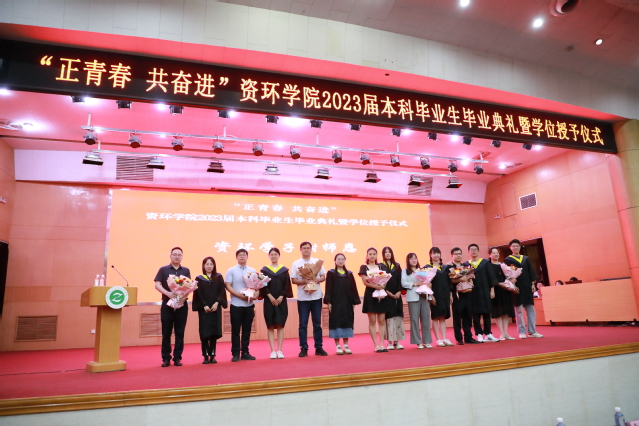 在“谢师恩”环节,毕业生代表为各系专业课老师代表、毕业班辅导员、公寓阿姨送上鲜花祝福。各位老师为毕业生现场送上祝福,台上的泪光饱含着深情,台下的掌声中诉说着不舍。