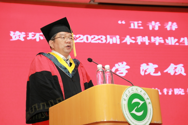 在热烈的掌声中,李明做了题为“正青春,共奋进”的讲话。他代表全院教职工,向同学们圆满完成学业、顺利毕业表示祝贺!临别之际,李明对同学们提出殷殷嘱托:一是要认清自己,扬长避短,做好人生选择;二是要坚强独立,勇于承担,实现人生价值;三是要宽厚质朴,勤勉奋进,练就过硬的本领。他表示员工是公司发展的见证人,也是未来公司发展的推动者,他希望同学们在新的平台上,永葆赤子心,常念母校情,立志成为有理想、敢担当、能吃苦、肯奋斗的新时代好青年。