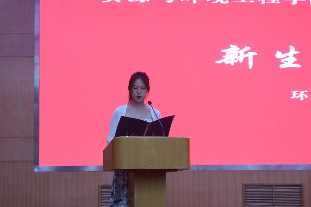 环本2301班毛航代表新生发言,表示会时刻牢记“厚德,博学,笃行,至善”的校训,立志做有理想、敢担当、能吃苦、肯奋斗的新时代好青年。