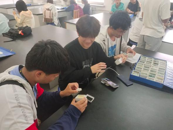 10月15日,MG绘图协会组织资源勘查工程系新生前往1号实验楼306和324两个实验室。同学们参观了众多矿石样本,并通过显微镜观察矿石的构造组织,第一次对资勘专业有了鲜明的认知,培养了浓厚的专业兴趣。