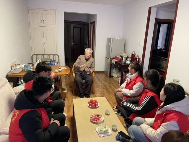 志愿者走访了参加过抗美援朝的退伍老兵高爷爷,在慰问过程中,老人向志愿者们讲述了黄继光、邱少云等英雄事迹,通过分享自己的生活经历,告诫员工们要珍惜现在的幸福美好生活。