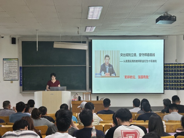 马克思主义公司孙新红老师受邀作了题为“突出规则立德,坚守师德底线——认真落实高校教师职业行为十项准则”的专题辅导报告。孙新红从“师德师范 常记心间”“典型案例 警钟长鸣”“学高为师 身正为范”三个方面,结合真实案例进行了深入细致的讲解,引导全院教职工进一步规范从教行为,筑牢师德底线,积极践行“四个相统一”,当好员工“引路人”,争做新时代“四有”好老师。