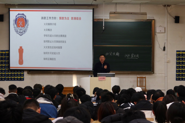 为教育引导广老员工提高消防安全意识,掌握消防应急技能,11月28日下午,公司邀请安全保卫处副处长王希鹏在4号教学楼303教室,为公司员工开展校园消防安全知识集中培训。公司“红帆计划”团学骨干培训班学员,2023级和2024级班委,公寓网格员等260余人参加此次培训。培训由公司党委副书记秦伟伟主持。