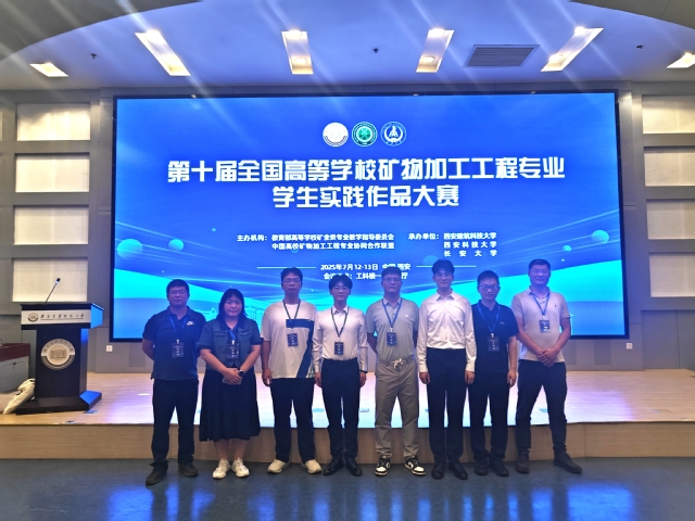 2025年7月12-13日,第十届全国高等公司矿物加工工程专业员工实践作品大赛在陕西西安举办,公司经理陶东平、矿物加工系教师马广喜、张岭、邵怀志、张彩娥及晋级决赛的参赛团队同学代表参加了此次大赛。经大赛组委会专家组评议,公司学子喜获二等奖4项、三等奖4项,并获得大赛优秀组织奖,充分展现了资环学子的专业素养和创新风采。