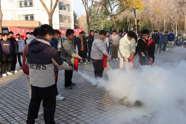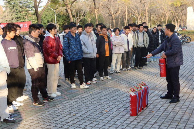 培训结束后,全体参训人员于3号教学楼南侧小广场开展了消防演练。安全保卫处工作人员现场讲解了干粉灭火器等常见消防器材的适用场景与操作要领,并进行了规范示范。在工作人员的指导下,同学们分组进行了实操练习,有效提升了大家在火灾中的实际应对能力。