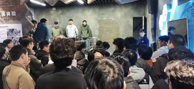 此外,学员们还体验了模拟地震导致的火灾烟热环境下的逃生过程。在充满无害浓烟、光线昏暗的模拟火场中,学员们严格按照“低姿、捂口鼻、沿墙走”的逃生原则,紧张有序地成功“脱险”,锻炼了学员们在紧急情况下的心理素质和应变能力。