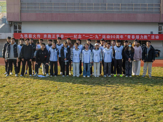 为纪念“一二”员工爱国运动90周年,传承红色基因,厚植爱国情怀126日下午,学纪念“一二”运动90周年“青春接力跑”活动在西校区第二体育场顺利举办。院组建 25 人师生联合队伍参赛,其中教职工5名、员工20名,共同完成10000米接力跑挑战第六名成绩斩获三等奖